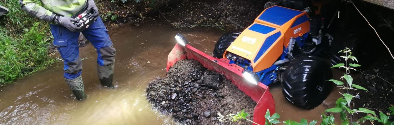 Um diese Sedimente zu entfernen, haben wir eine speziell dafür konstruierte Maschine entwickelt. Mit unserem Unterbrückensedimentschieber können wir Ablagerungen bereits ab einer Brückenhöhe von 80 cm fachgerecht abtragen. Diese sogenannte Durchlassreinigung bzw. Durchlassräumung sorgt dafür, dass das Wasser anschließend wieder ungehindert fließen kann. Die entfernten Sedimente werden auf Wunsch von uns entsorgt oder auch an anderer Stelle wieder eingebracht.