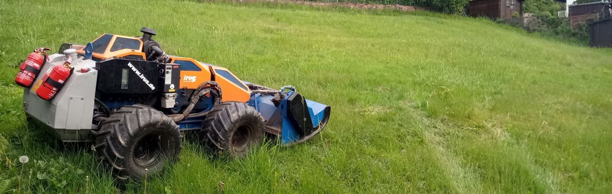 Selbst schwer zugängliche Böschungen und Hänge stellen für uns kein Problem dar: Mit modernster Technik pflegen wir auch anspruchsvolles Gelände effizient und sicher.