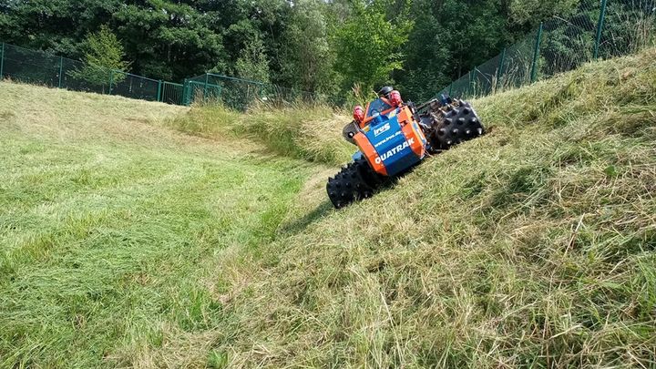 Entwickelt für anspruchsvollste Bedingungen, eröffnet der DELTRAK neue Möglichkeiten in der Landschaftspflege. Der DELTRAK wurde entwickelt, um schwieriges und gefährliches Gelände ohne Gefährdung des Bedieners zu pflegen. Er verfügt über einen extrem niedrigen Schwerpunkt für gute Stabilität und Wendigkeit am Steilhang und ist in der Lage bis 60 ° steil zu arbeiten.